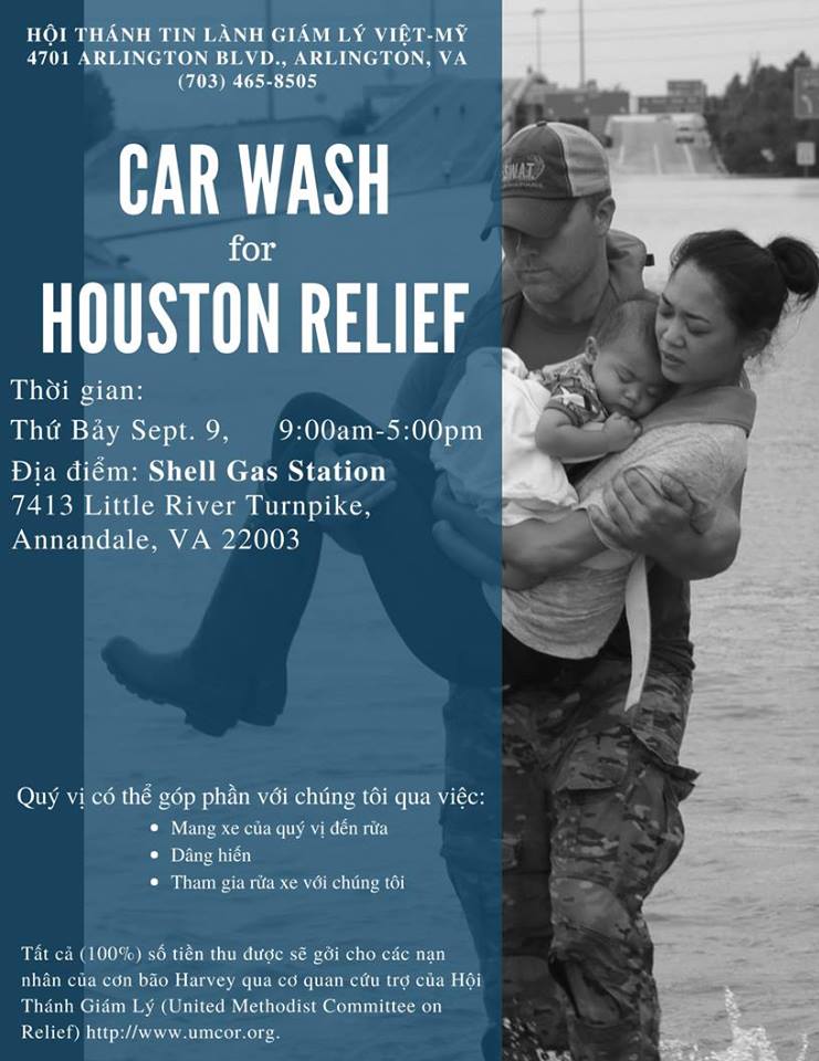 Vâng theo lời dạy của Chúa Giê-su và để tiếp nối theo tinh thần đó, Hội Thánh chúng tôi tổ chức một chương trình rửa xe gây quỹ để tiếp tay cứu trợ những nạn nhân trong cơn bão Harvey vào hai ngày: