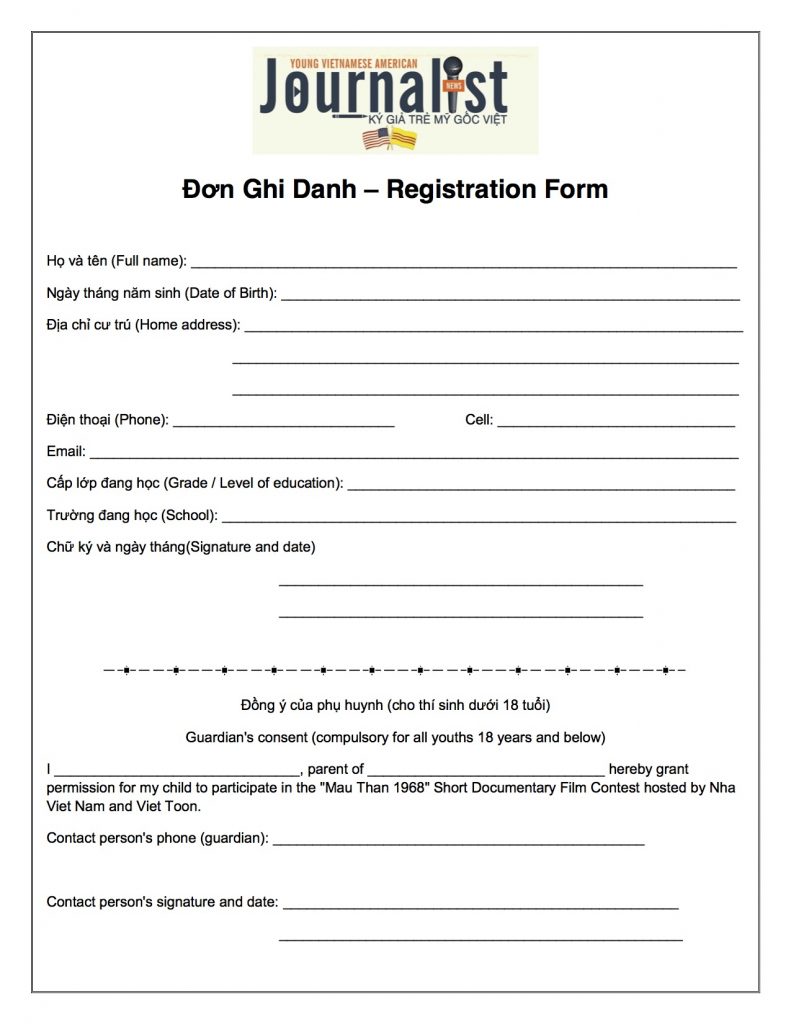 Young Vietnamese American Journalist “Mau Than 1968” Short Documentary Film Contest Registration Form