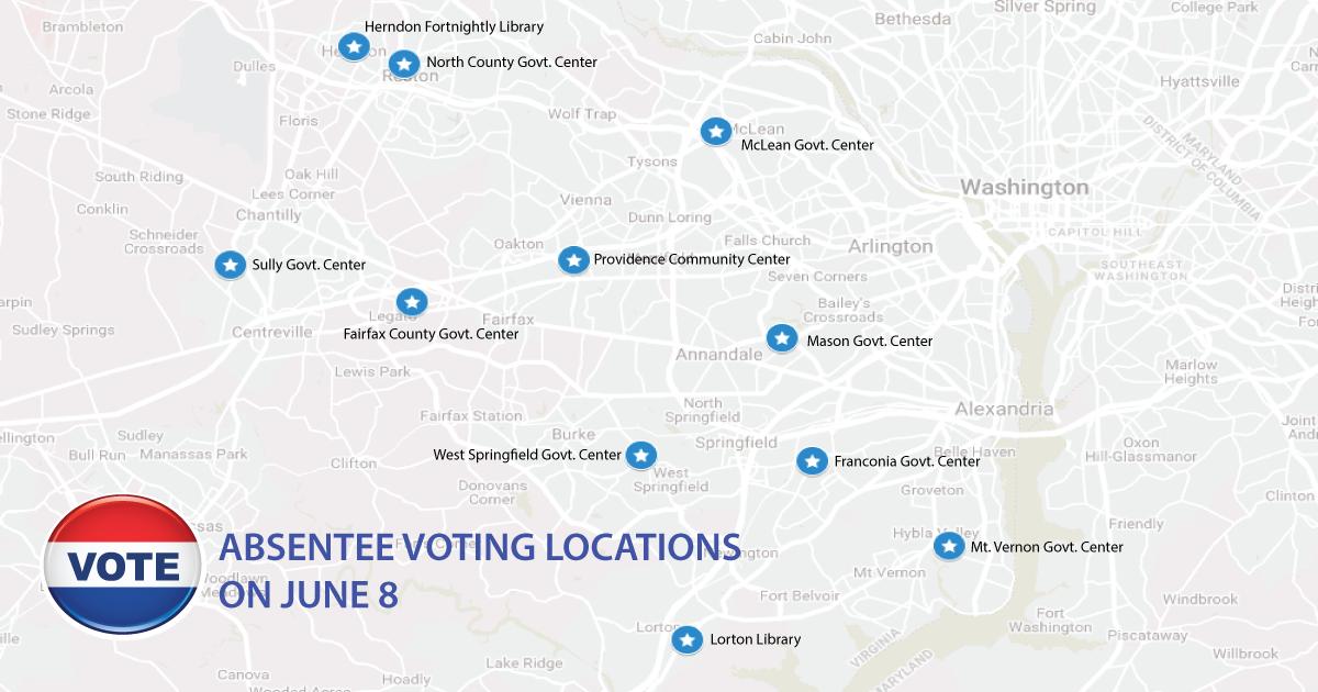 Until June 8, the Fairfax County Government Center is the only location to absentee vote.