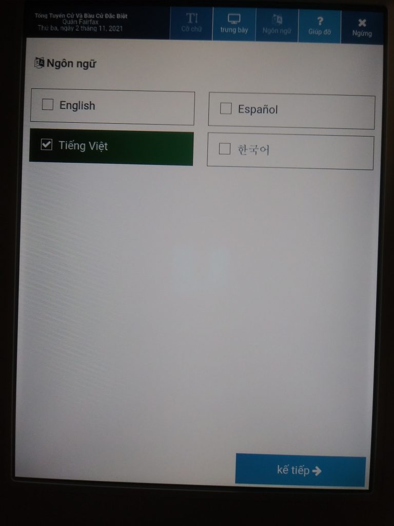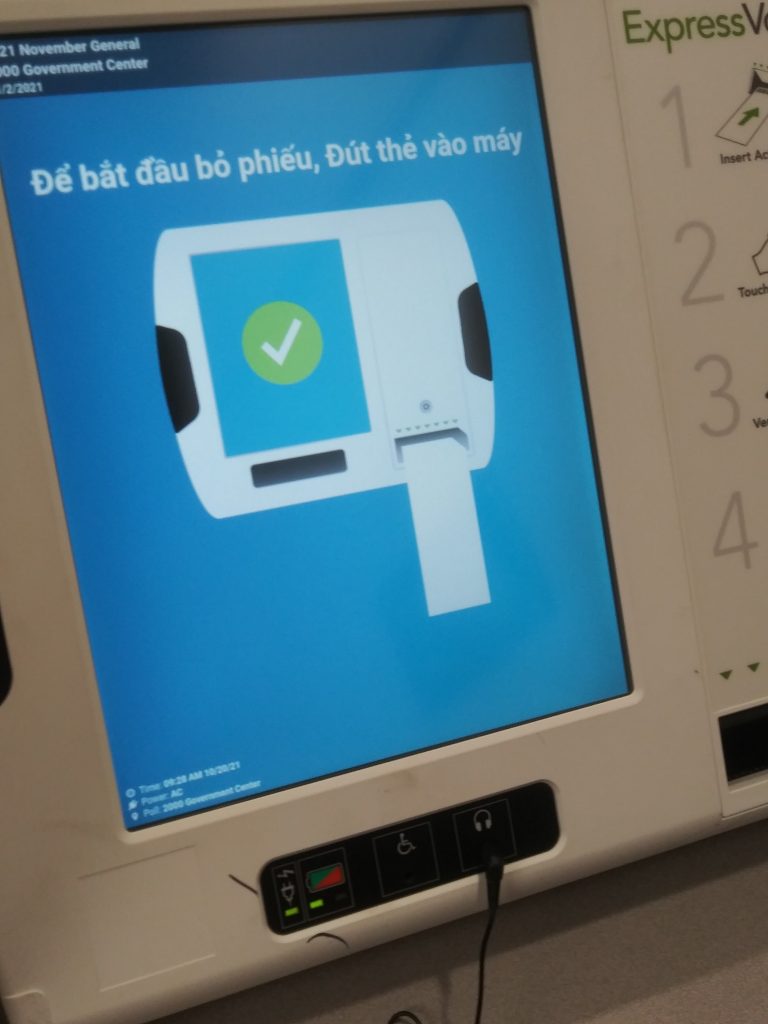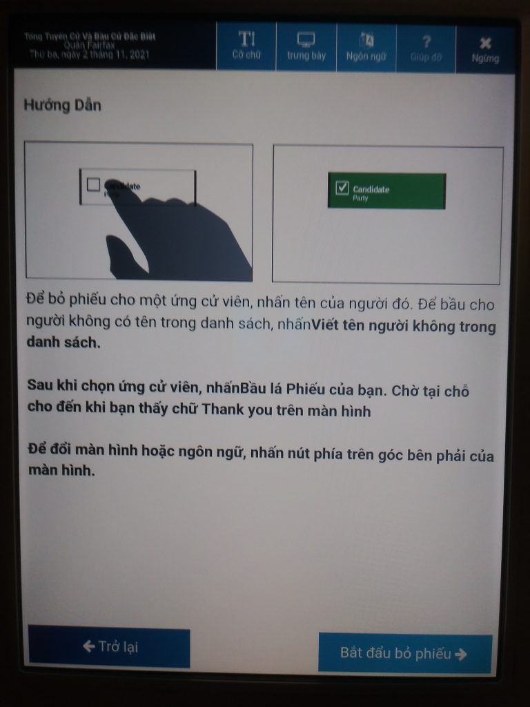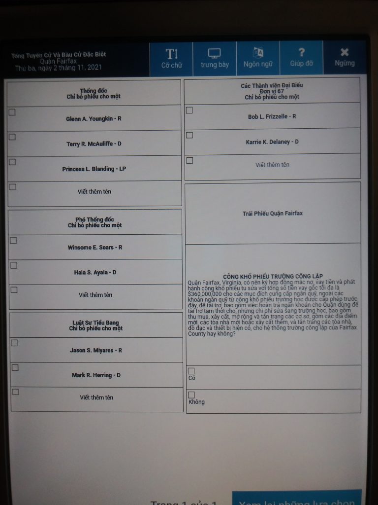 Cách sử dụng “ExpressVote machine” hay “Ballot Marking Device” tại 16 địa điểm bỏ phiếu sớm của quận Fairfax vào hàng ngày từ ngày 21 cho đến ngày 30 tháng 10 cuộc bầu cử Virginia ngày 2 tháng 11 năm 2021