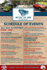 Hosted by the City of Fairfax Parks and Recreation Department and the Early Ford V-8 Club of America (Northern Virginia Regional Group).