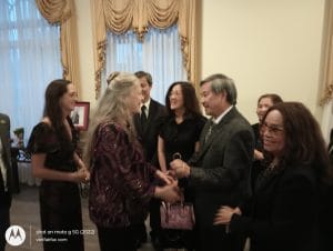 Vietnamese people meet with family member of Gerry Connelly at visitation hour at Fairfax Funeral Home