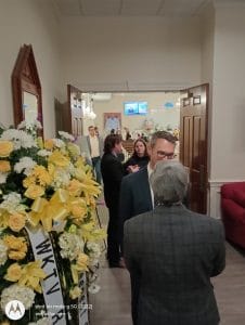 Vietnamese people meet with staff member of Gerry Connelly during visitation hour at funeral home