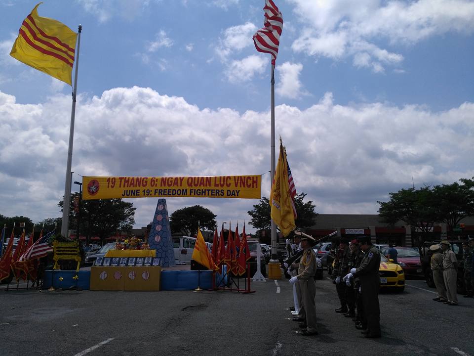 Chào Quốc Kỳ trong Lễ Kỷ Niệm Ngày Quân Lực Việt Nam Cộng Hòa và Ngày Chiến Sĩ Tự Do 2017 tại Kỳ Đài Eden vào ngày Chủ Nhật 18/6/2017